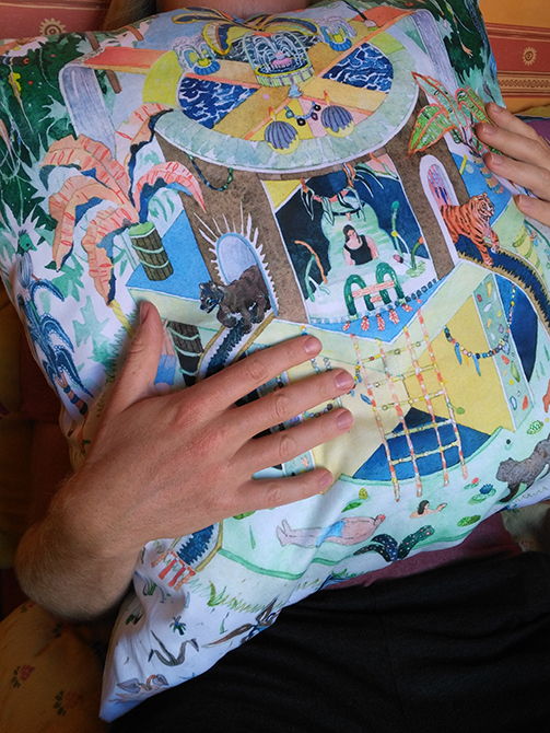 Ces deux dessins format carré ont été imprimés sur coton bio