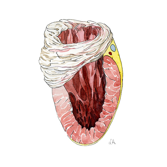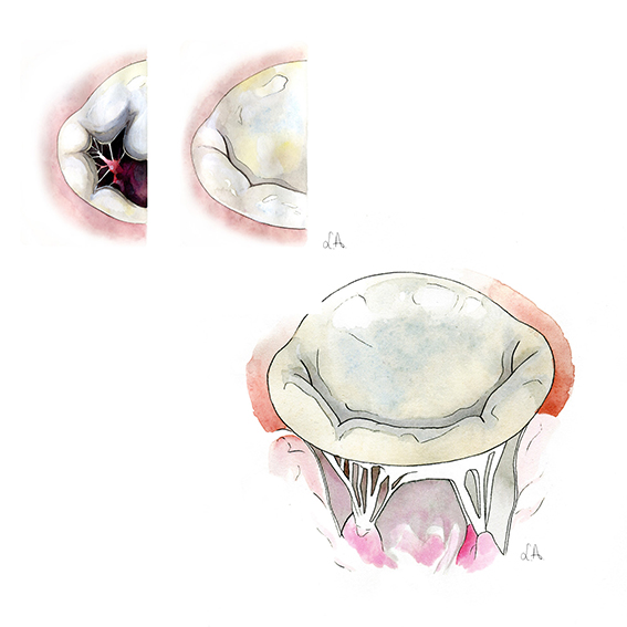 Illustrations d'un article sur la valve mitrale (cardiologie) aquarelle sur papier, 2012
